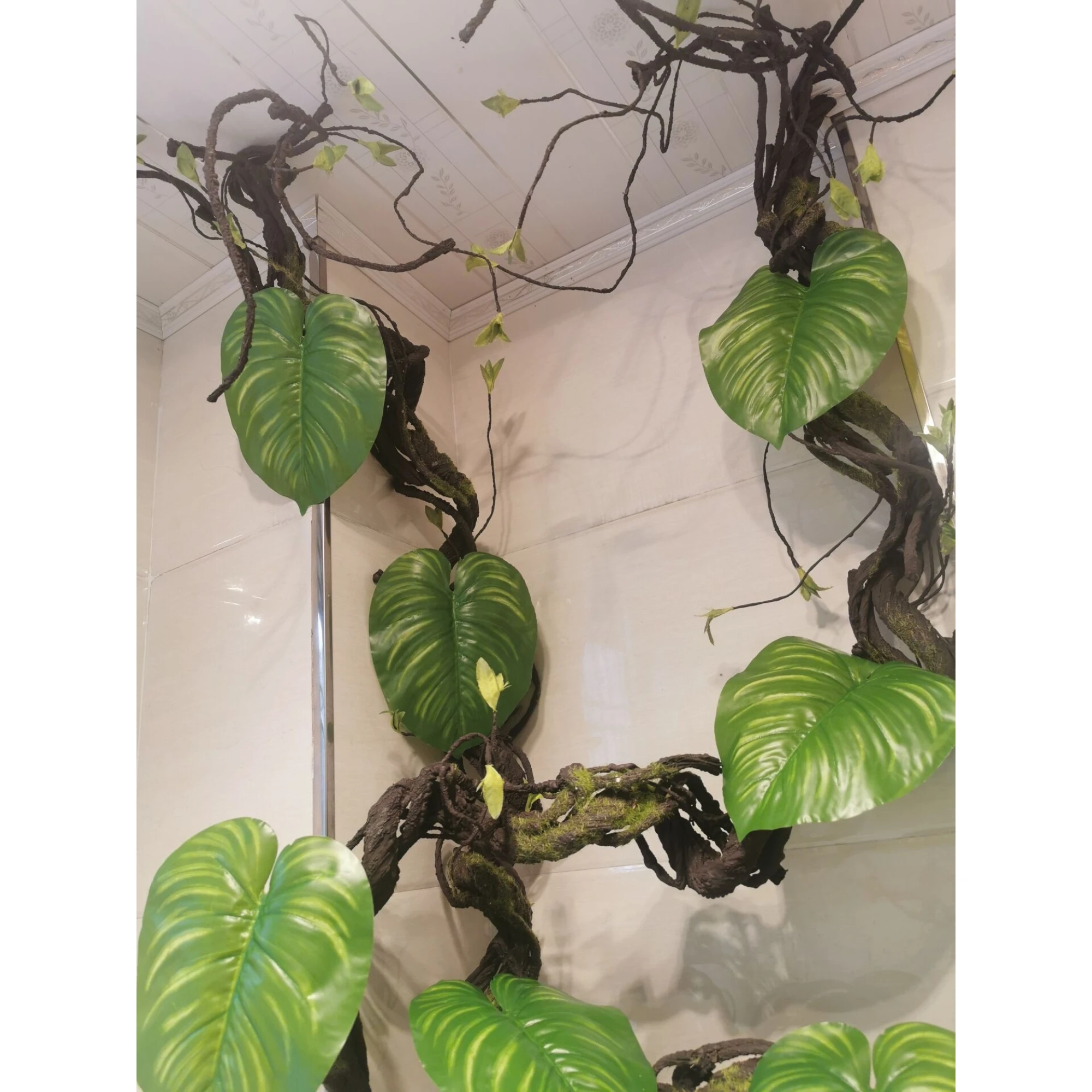 Material: foamed artificial rattan, plastic leaves, iron wire.