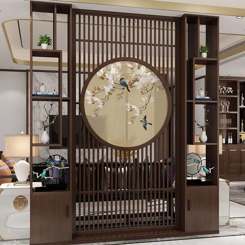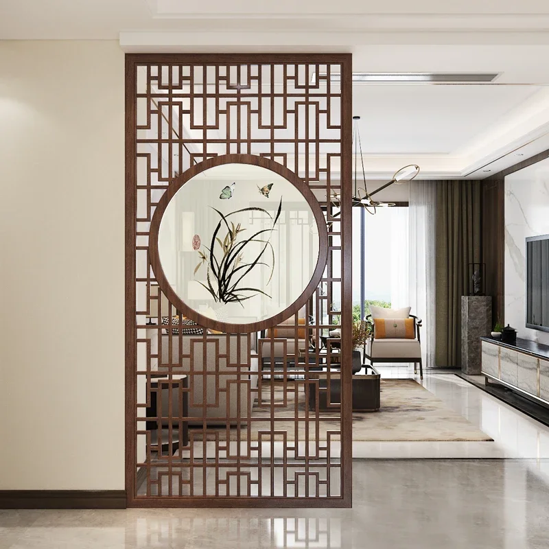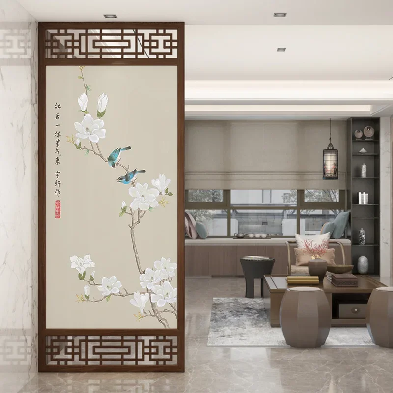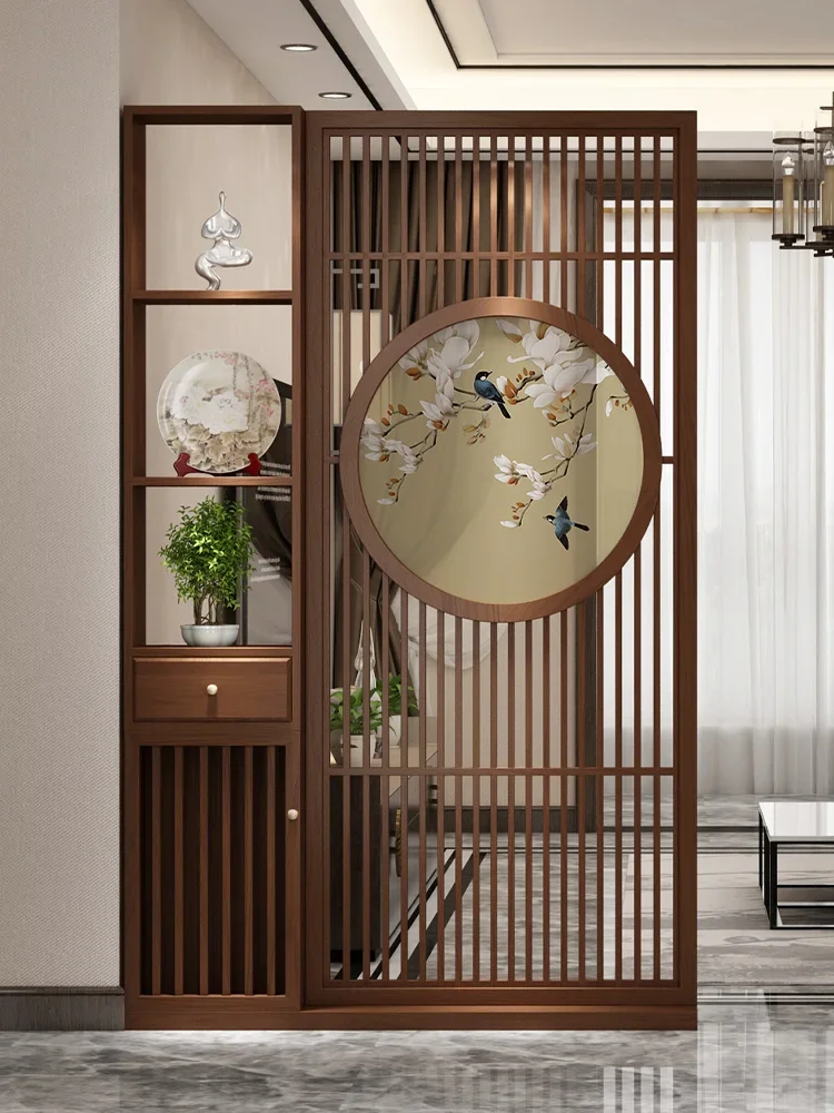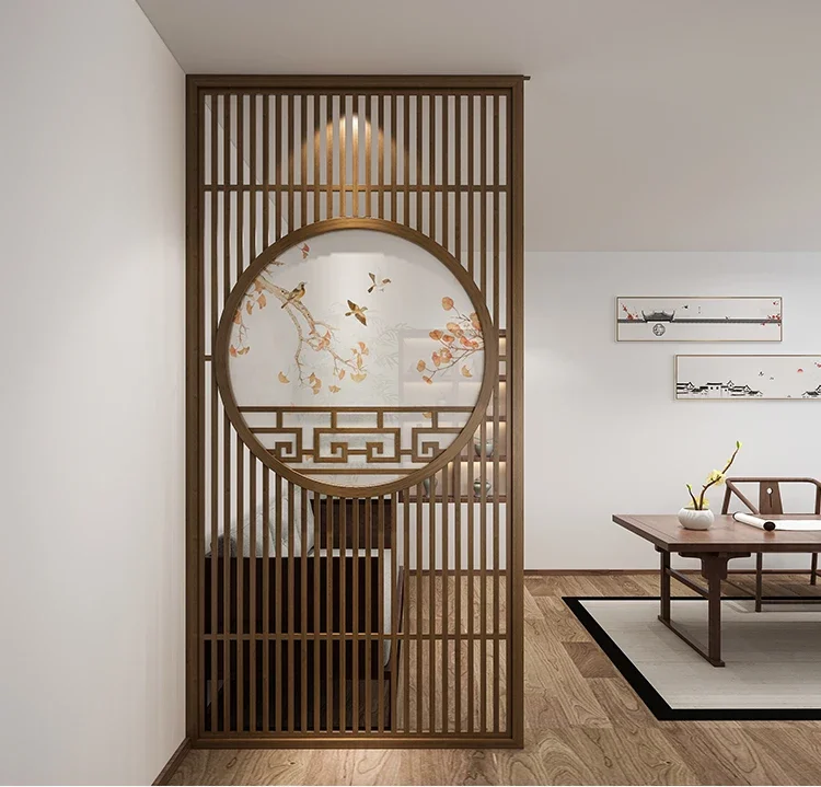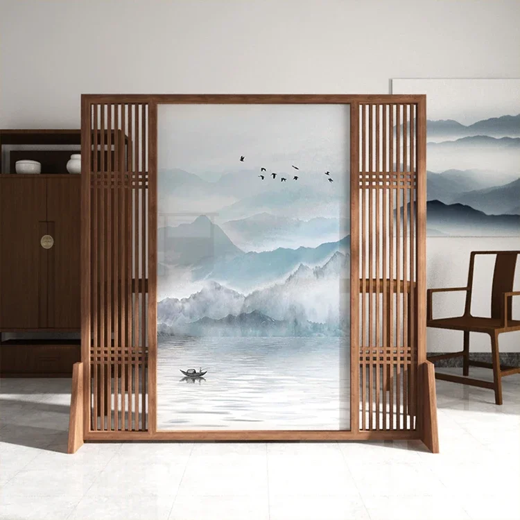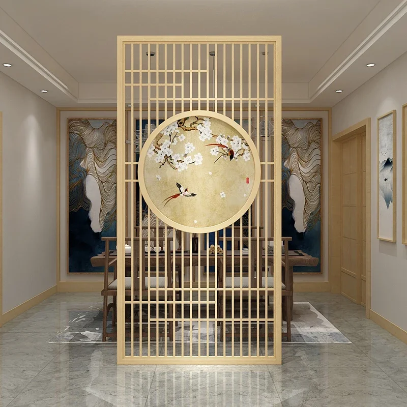 Custom Home Living Room Entrance Office New Japanese Solid Wood Grille Screen Mobile Baffle Wall