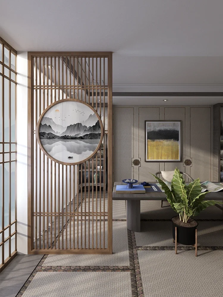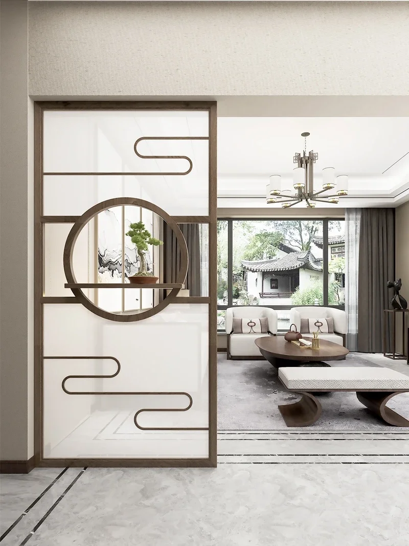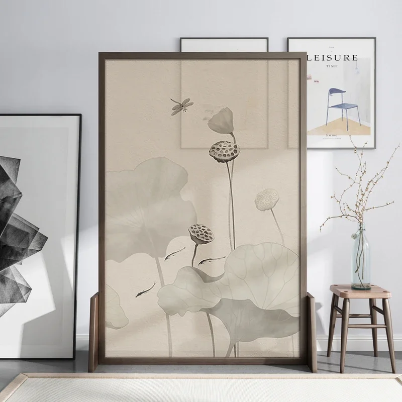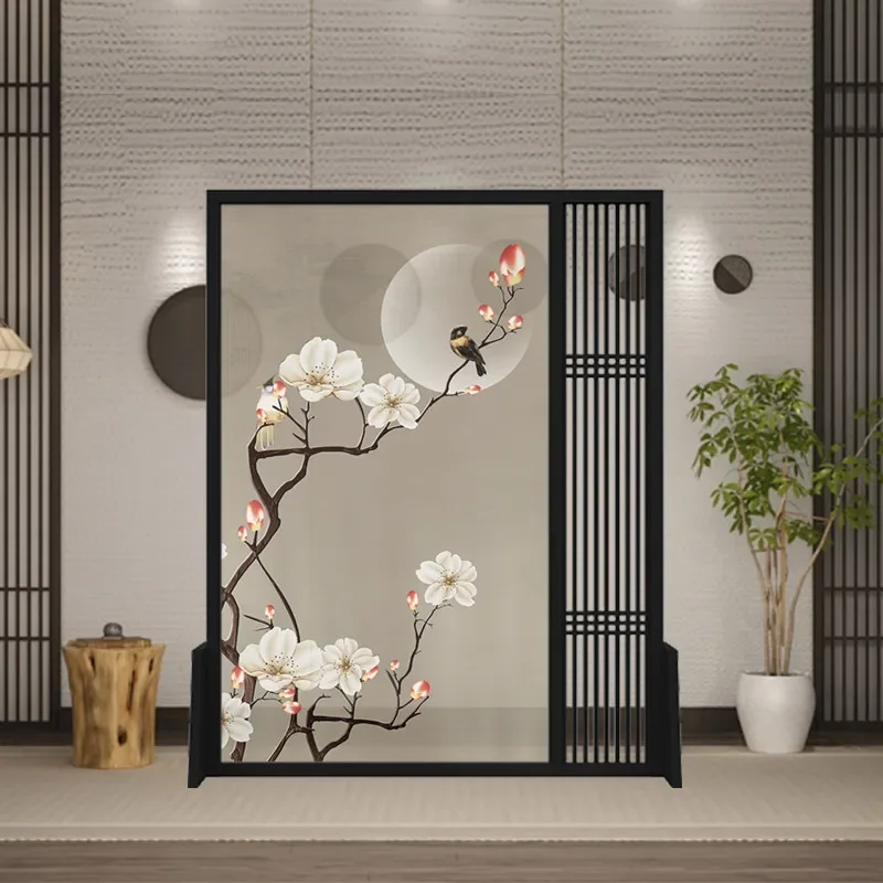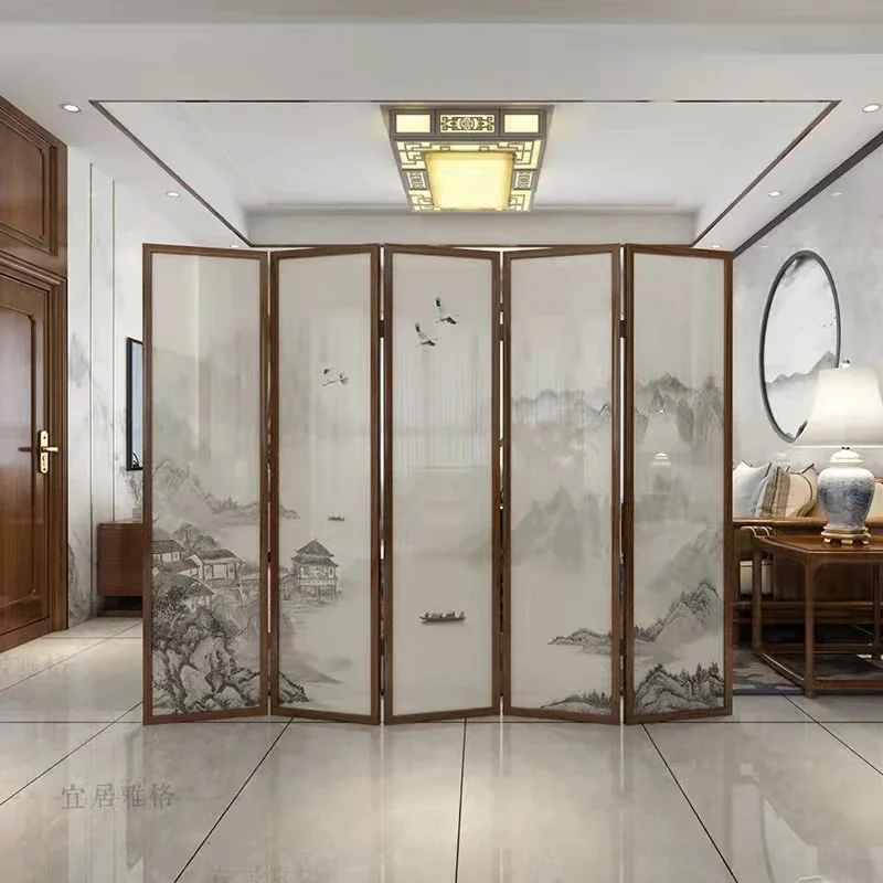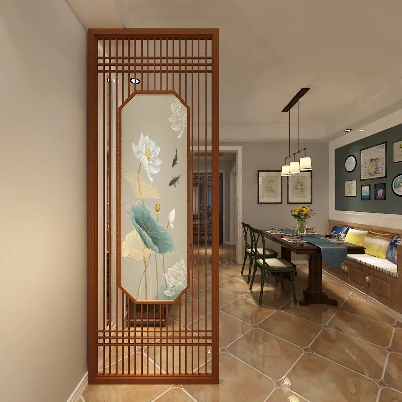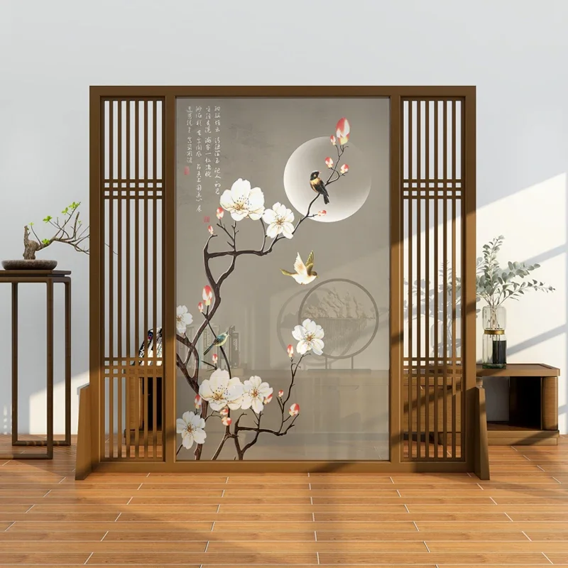 Custom Home Living Room Entrance Office New Japanese Solid Wood Grille Screen Mobile Baffle Wall