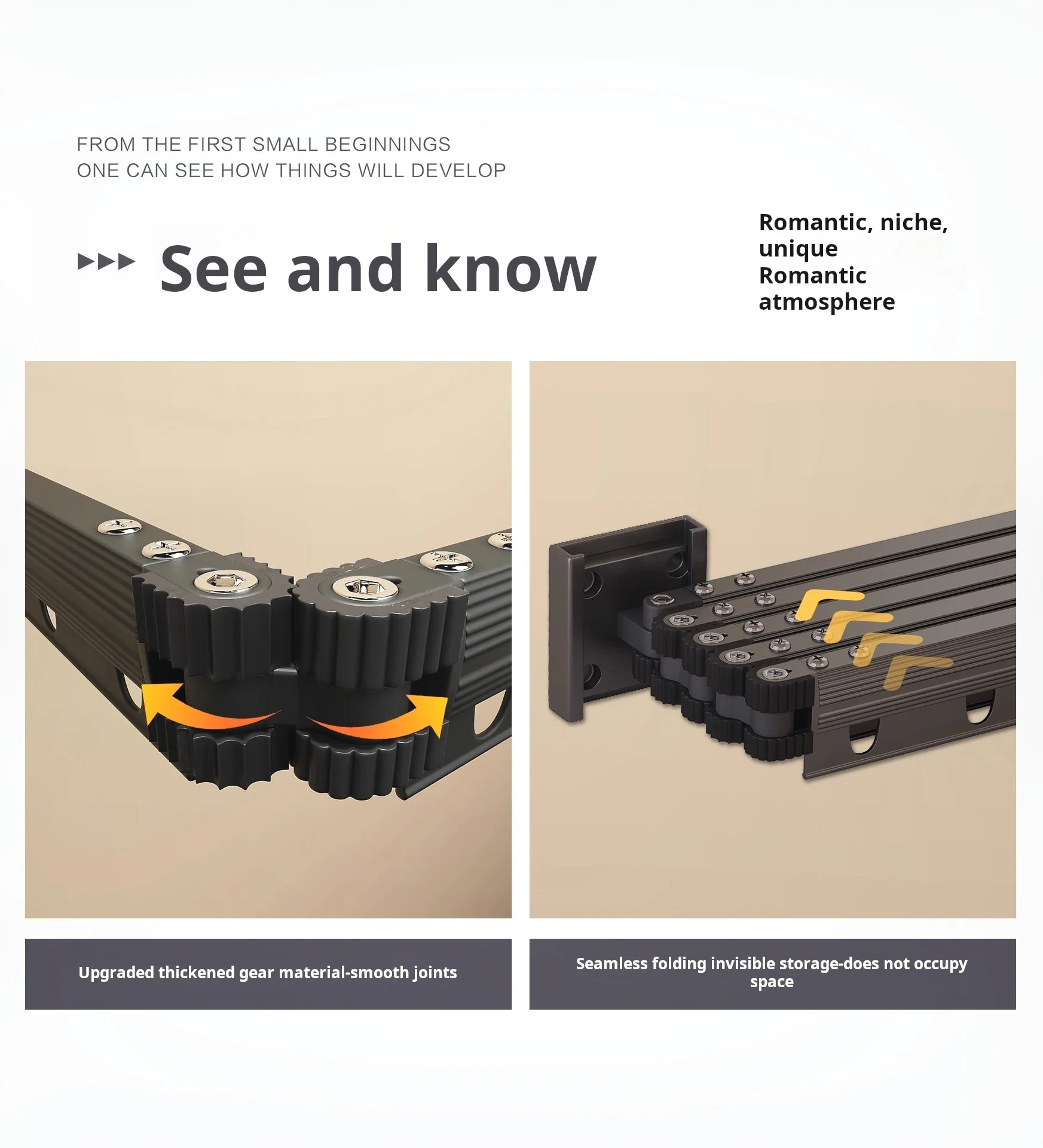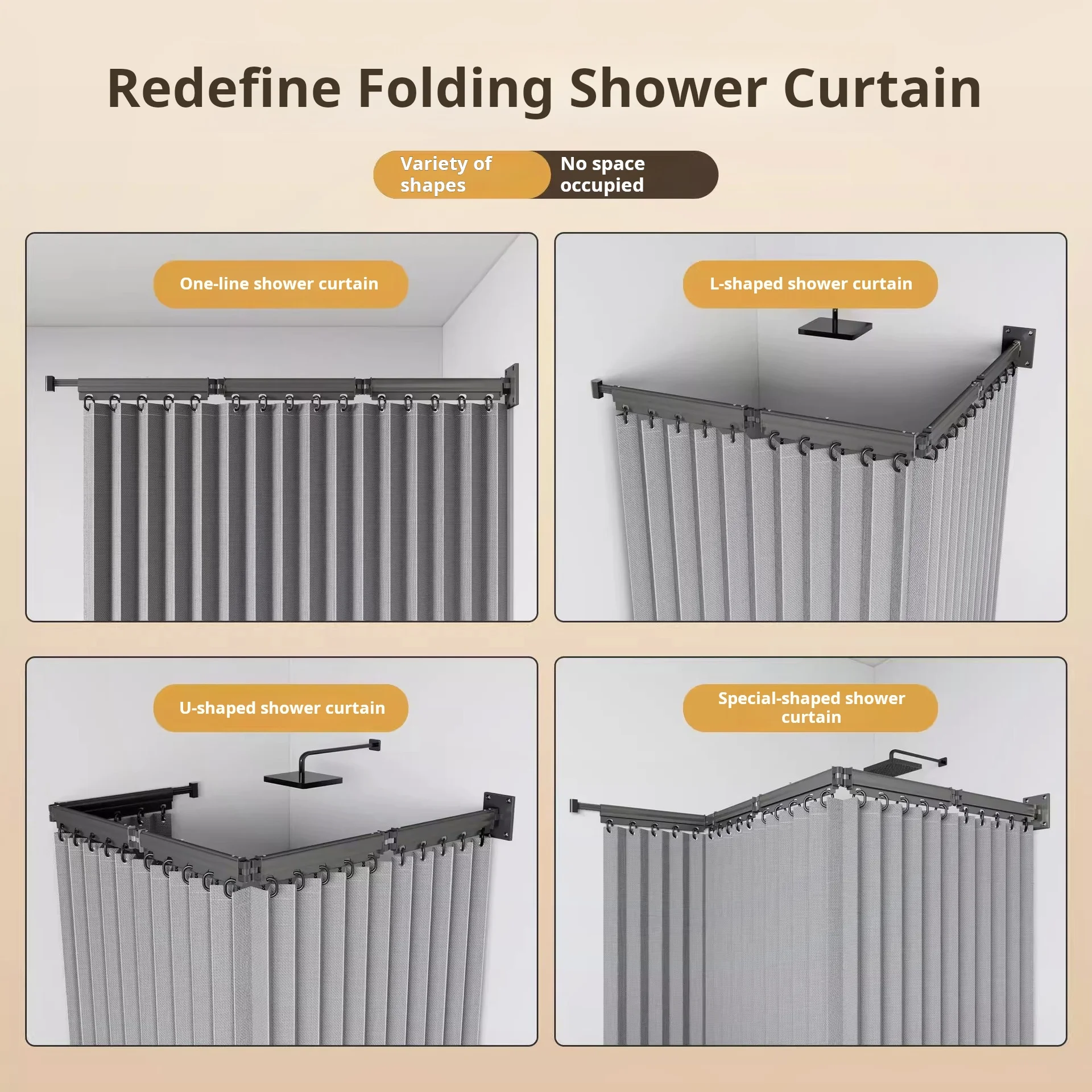 Foldable Shower Curtain Rod Set, Invisible Bathroom Partition Waterproof, Premium Dry-Wet Separation with Grommets