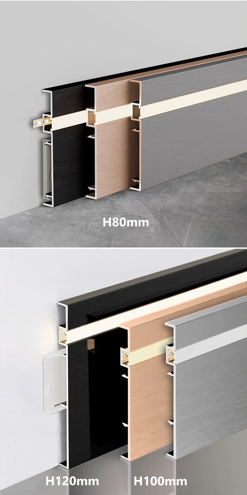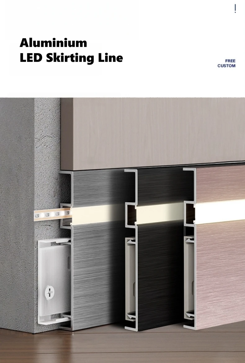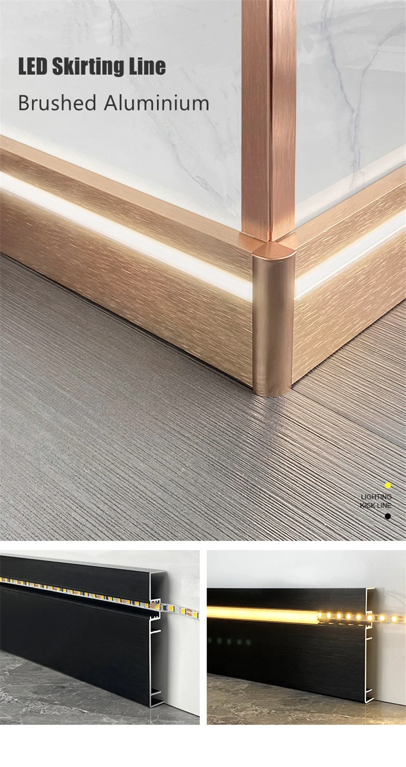 H80mm LED Skirting Line 0.5m 1m Brushed Aluminium LED Profile Floor Baseboard Bar Strip Light Metal Wall Skirting Linear Lamp