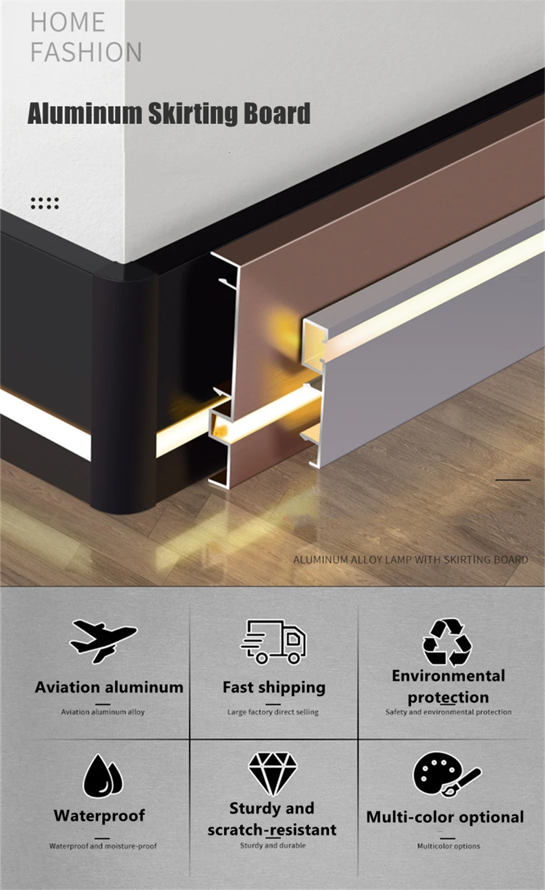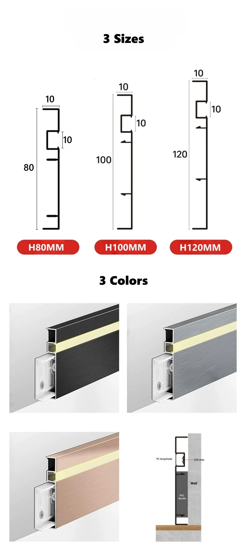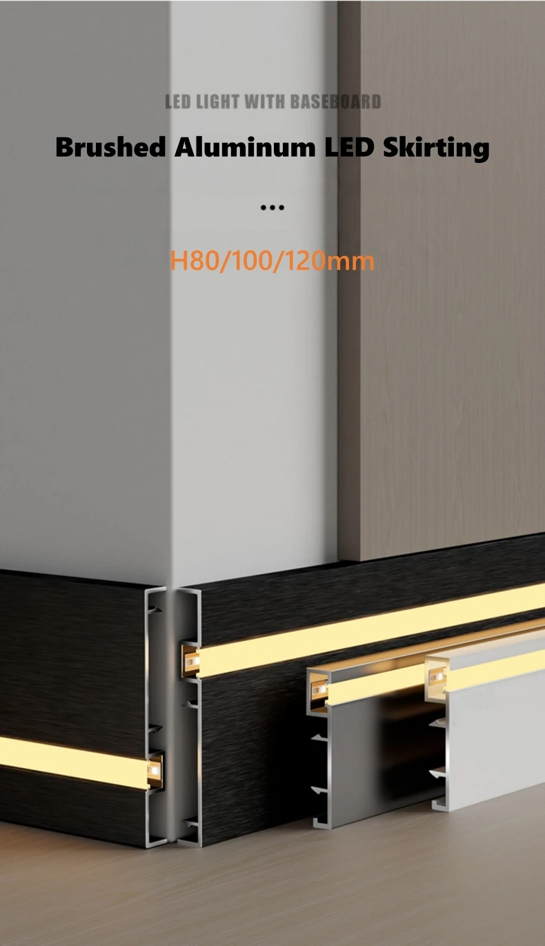 H80mm LED Skirting Line 0.5m 1m Brushed Aluminium LED Profile Floor Baseboard Bar Strip Light Metal Wall Skirting Linear Lamp