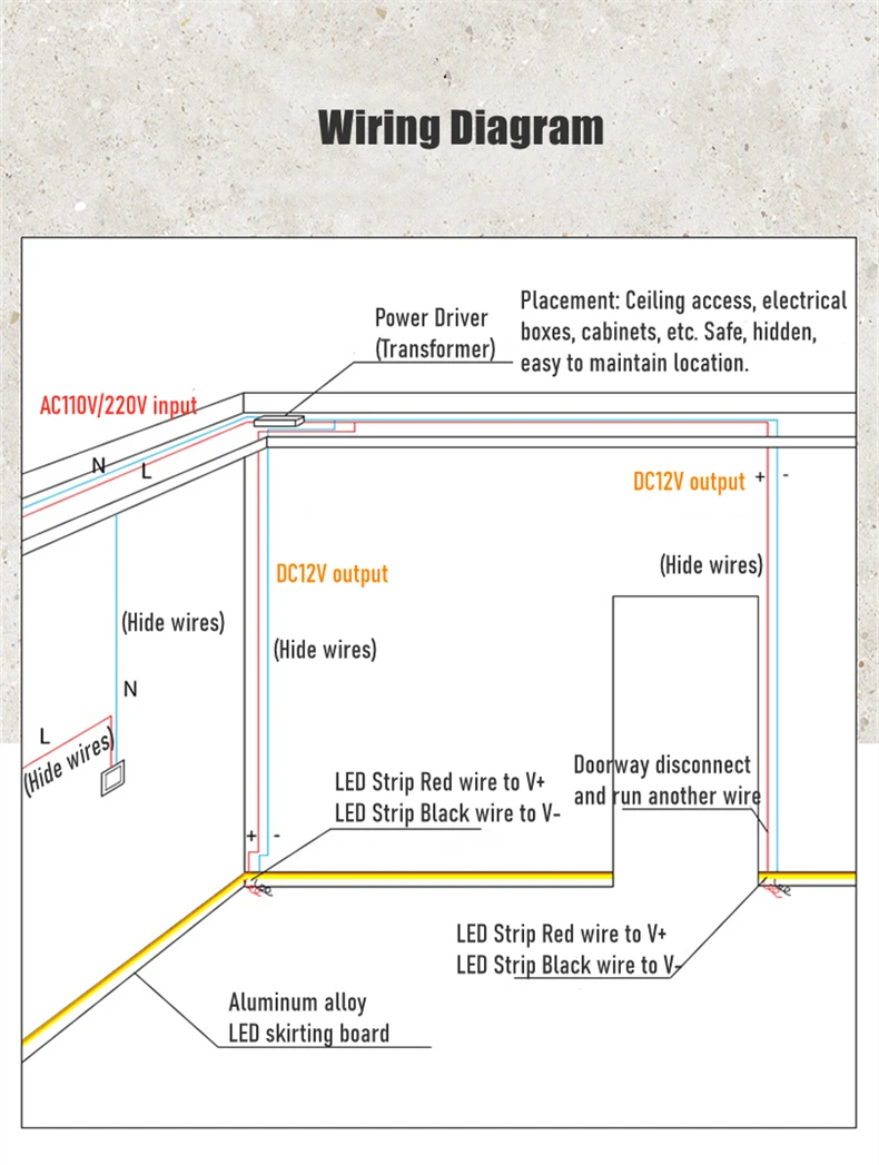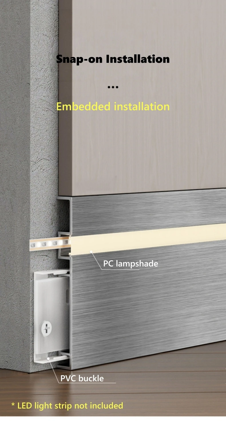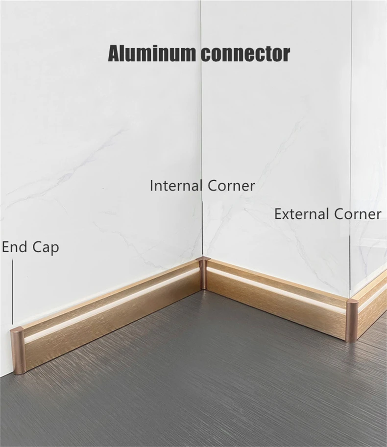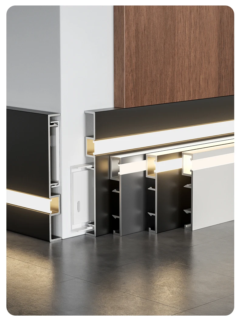 Each meter of baseboard includes 1 aluminum groove + 1 PC cover + 2 Buckles.